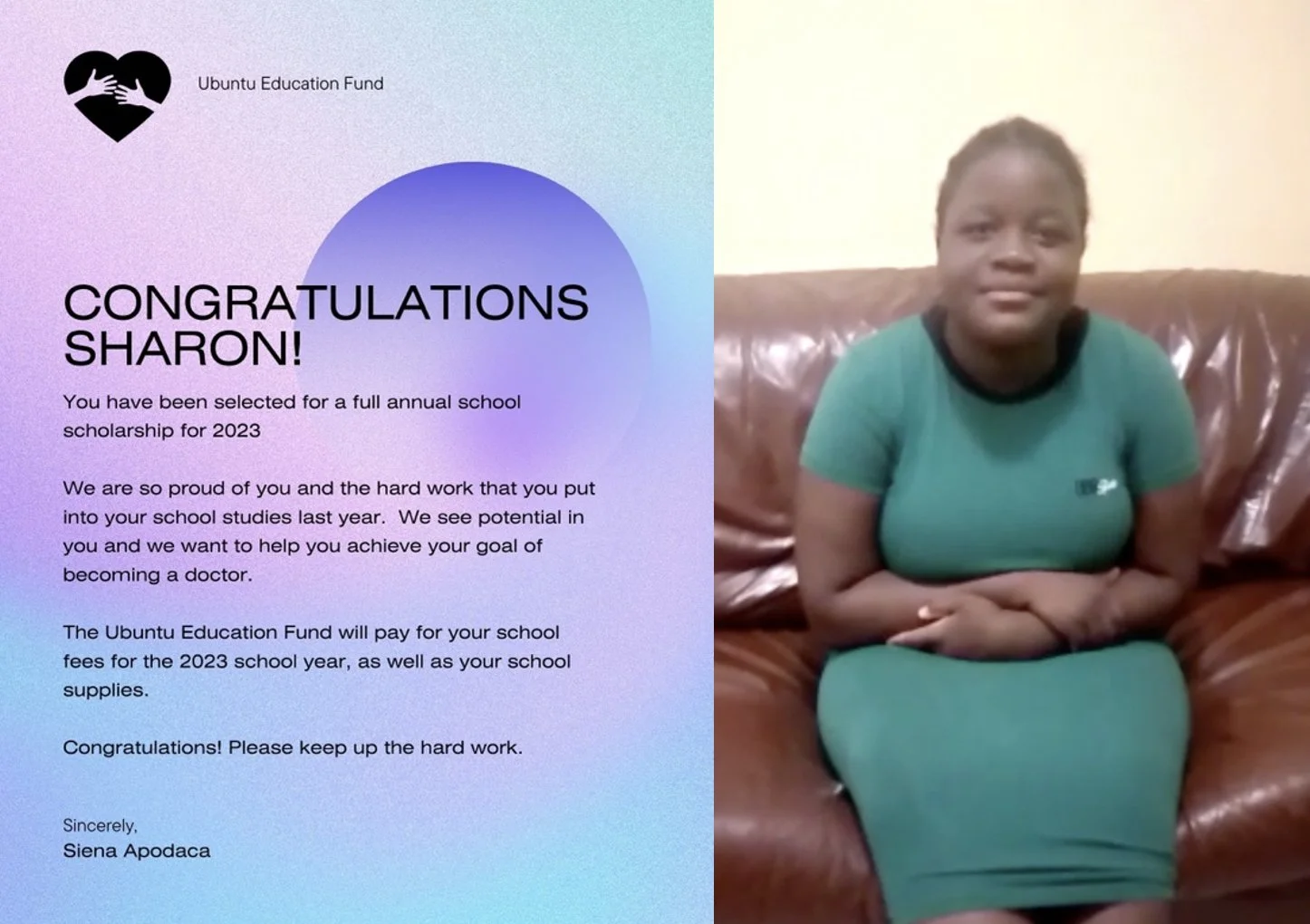 I started with contacting all the families who worked in my grandfather’s store and had all the children send a video recording of what their dream life would look like if they could go to school. The most surprising lesson was that most of the children’s dreams were to become specialized, geared to help their community, hence Ubuntu. The hardest part was that I could only pay for three right now, but it is also very motivating to achieve more.